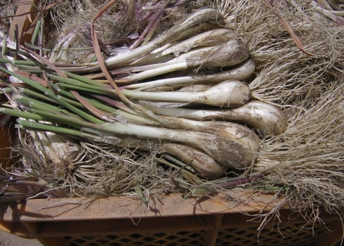 根付き 生らっきょうは厳しい環境下の砂の丘で育てています。
